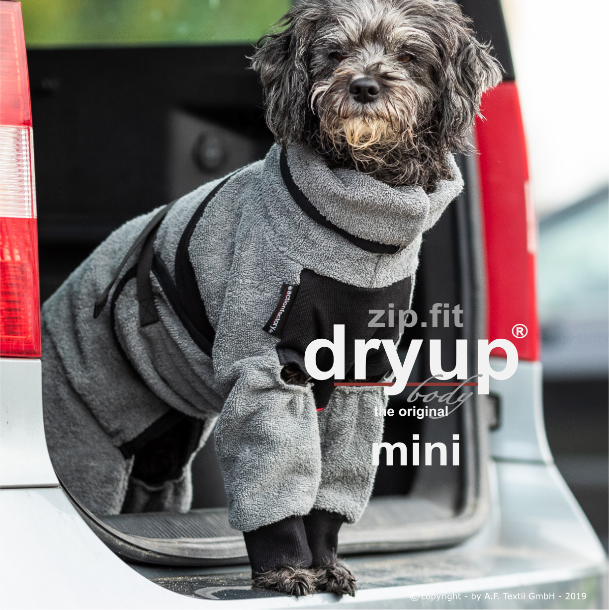 Der Body zip.fit ist sozusagen ein "Upgrade" zu dem Dryup Cape. Auch er ist in 100% Baumwoll-Frottee gefertigt und hat eine tolle Passform mit langem Bein. Wir finden das besonders toll, z. B. bei langhaarigen Hunden. Nicht nur, dass diese dann auch an den Beinen schnell abtrocken, sondern es ist auch eine prima Möglichkeit, die Wohnung sauber zu halten. Ich persönlich ziehe den Body zip.fit meinem Australian Shepherd sehr gerne nach einem nassen, schmuddeligen Herbstspaziergang an. Der Bademantel zieht den Schmutz förmlich aus dem Hundefell. Nach dem Trocknen, den Bademantel einfach vorsichtig ausziehen und vor der Tür ausschütteln. Eine tolle Sache. Natürlich ist er auch genauso für kurzhaarige Hunde super geeignet, besonders wenn diese leicht frieren.